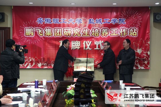 12月10日,由鵬飛集團(tuán)聯(lián)合安徽理工大學(xué)、鹽城工學(xué)院創(chuàng)建的研究生培養(yǎng)工作站在江蘇鵬飛集團(tuán)公司舉行揭牌儀式,江蘇鵬飛集團(tuán)副總經(jīng)理周延標(biāo)介紹了與安徽理工大學(xué)、鹽城工學(xué)校產(chǎn)學(xué)研合作情況,鹽城工學(xué)院邵榮副校長(zhǎng)、安徽理工大學(xué)王其東副校長(zhǎng)對(duì)研究生培養(yǎng)工作站的成立提出新的工作要求,大公鎮(zhèn)政府、海安縣科技局領(lǐng)導(dǎo)做了重要講話,鹽城工學(xué)院邵榮副校長(zhǎng)、王其東副校長(zhǎng)、鵬飛集團(tuán)副總經(jīng)理周延標(biāo)在三方合作協(xié)議上簽字,三方共同為鵬飛集團(tuán)研究生工作站揭牌,會(huì)議結(jié)束后,大家參觀了江蘇鵬飛節(jié)能環(huán)保產(chǎn)業(yè)技術(shù)研究院和鵬飛集團(tuán)全面建成投產(chǎn)后的北廠新區(qū)。