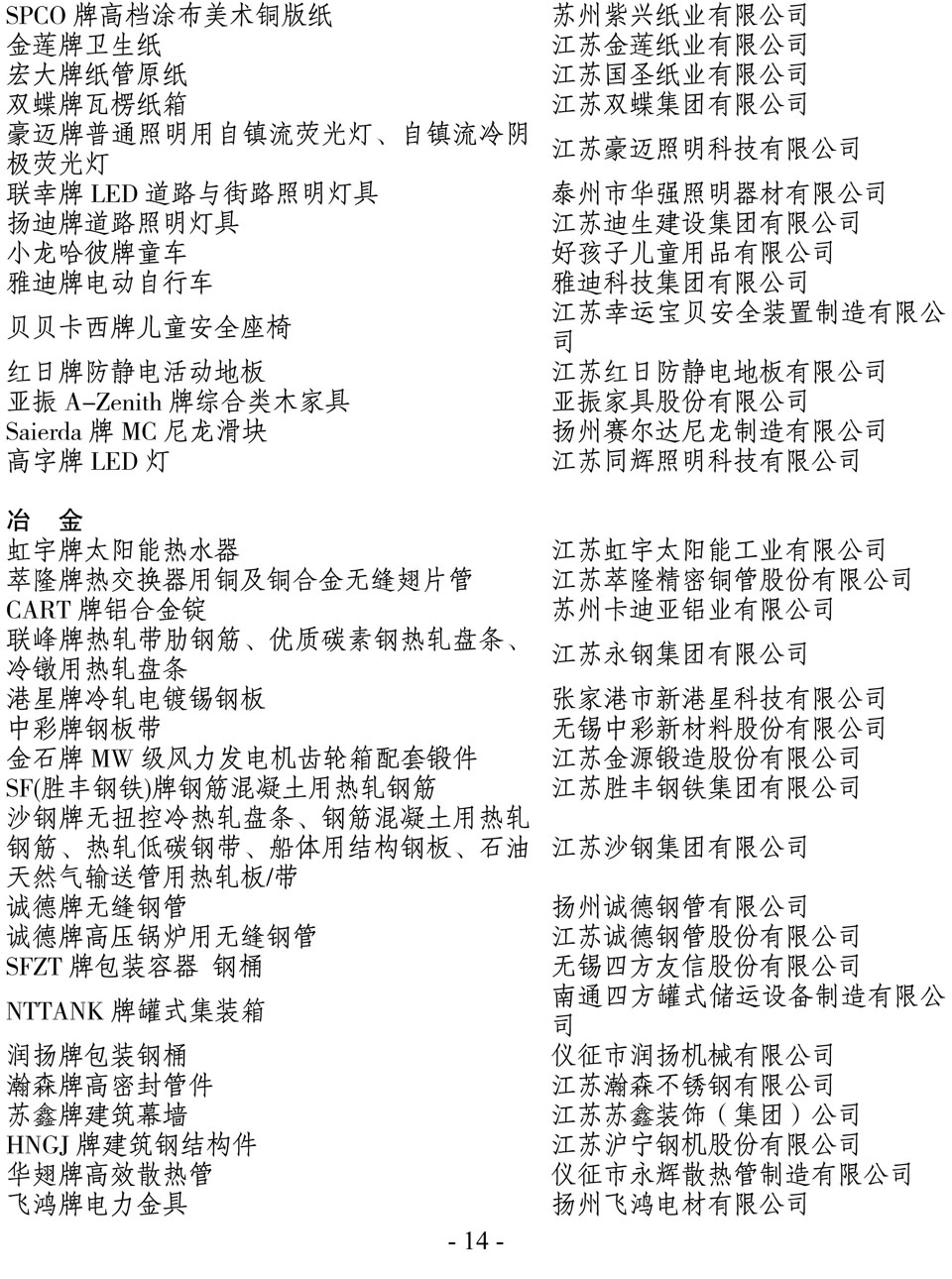 日前,江蘇省名牌戰(zhàn)略推進(jìn)委員會(huì)公布了2014年江蘇省名牌產(chǎn)品名單,“
