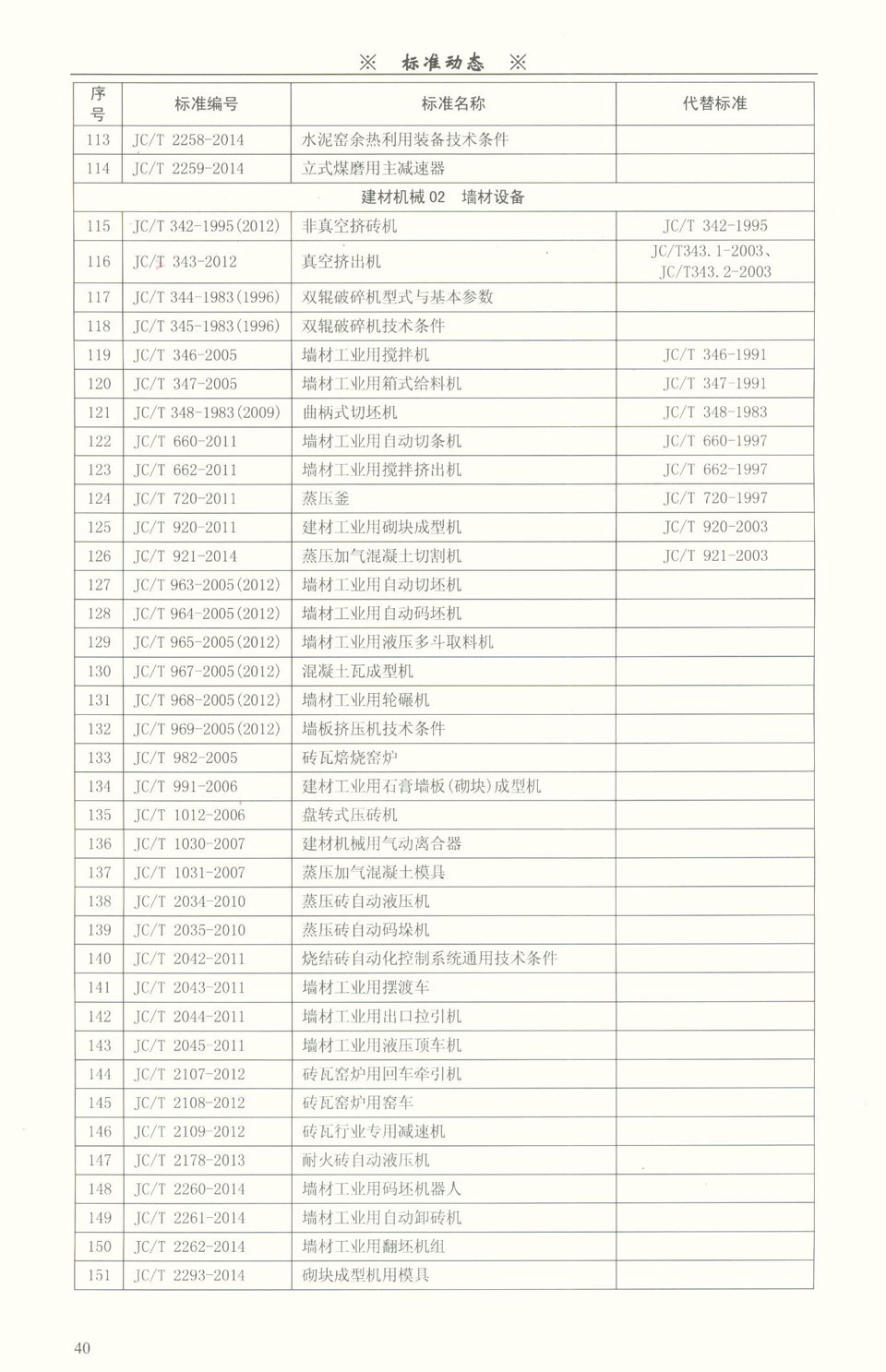 建材裝備領(lǐng)域標(biāo)準(zhǔn)目錄一覽表