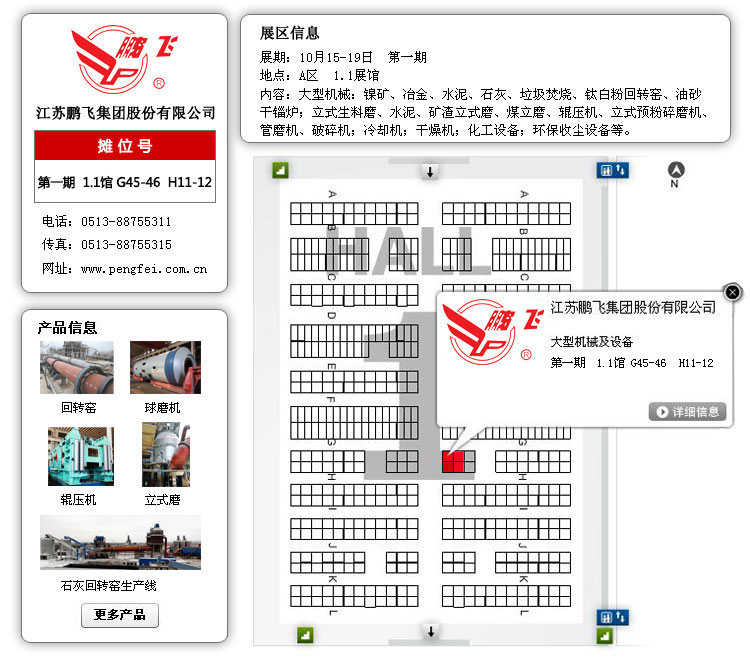 江蘇鵬飛集團(tuán)在第118屆廣交會(huì)上精心布置展位,印發(fā)所產(chǎn)各類成套設(shè)備的介紹手冊(cè),并運(yùn)用全景水泥生產(chǎn)線模型現(xiàn)場(chǎng)演示,委派具有多年工作經(jīng)驗(yàn)的銷售、技術(shù)、售后等專業(yè)工作人員為顧客詳細(xì)介紹新產(chǎn)品、新技術(shù),全面分析解答各類設(shè)備從購買到投產(chǎn)使用以及售后服務(wù)等每個(gè)環(huán)節(jié)的問題,為您排疑解難,與您達(dá)成共識(shí)。同時(shí),也希望能和更多的國(guó)內(nèi)外公司加強(qiáng)聯(lián)系,互相合作,為客戶提供更加完美的產(chǎn)品。