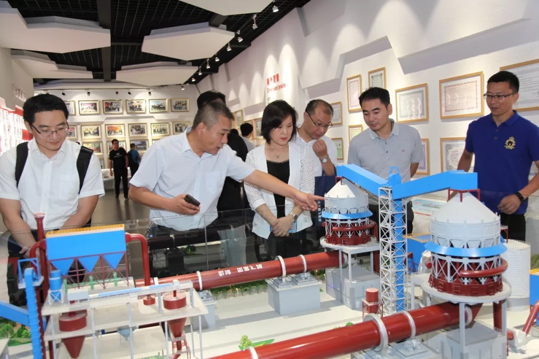 董事長王家安陪同全國建材裝備標(biāo)準(zhǔn)化技術(shù)委員會秘書長王玉敏參觀鵬飛集團(tuán)展示廳