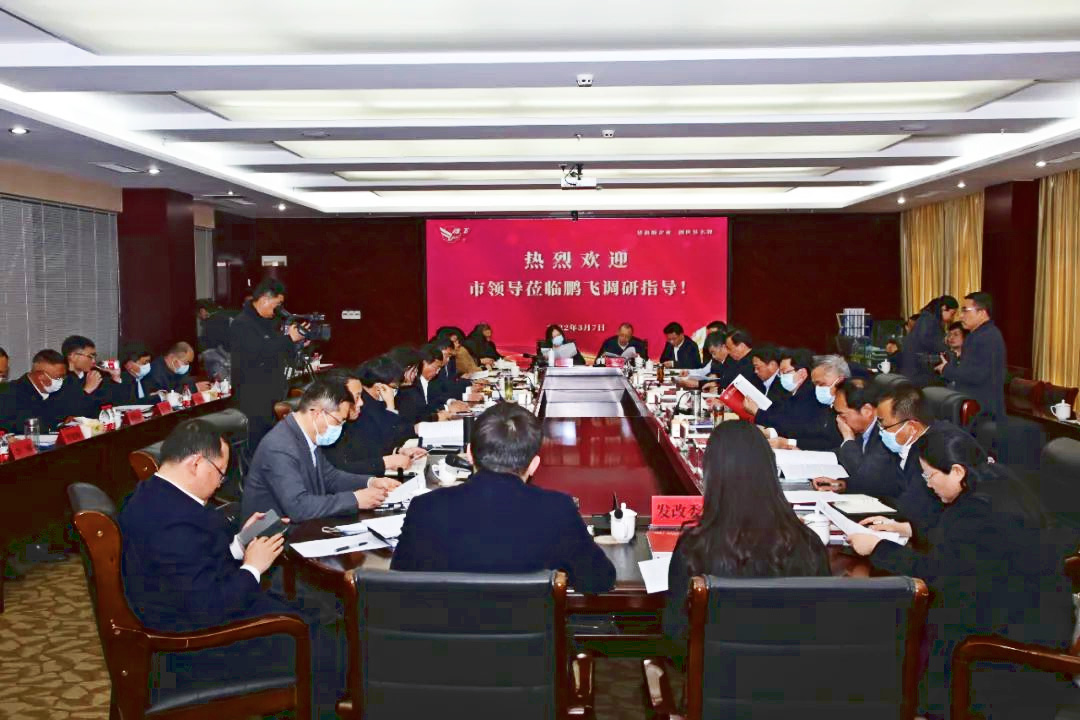 3月7日,市委書記于立忠率隊(duì)赴江蘇鵬飛集團(tuán)開展調(diào)研。市委副書記、市長譚真,市人大常委會(huì)主任張亞曦,市委副書記張浩,市領(lǐng)導(dǎo)嚴(yán)長江、盧忠平、馬小飛、安譜昌、張颯參加活動(dòng)。鎮(zhèn)黨委書記金山存,黨委副書記、鎮(zhèn)長魯競,副鎮(zhèn)長曹陽,江蘇鵬飛集團(tuán)股份有限公司董事長王家安,等參加活動(dòng)。