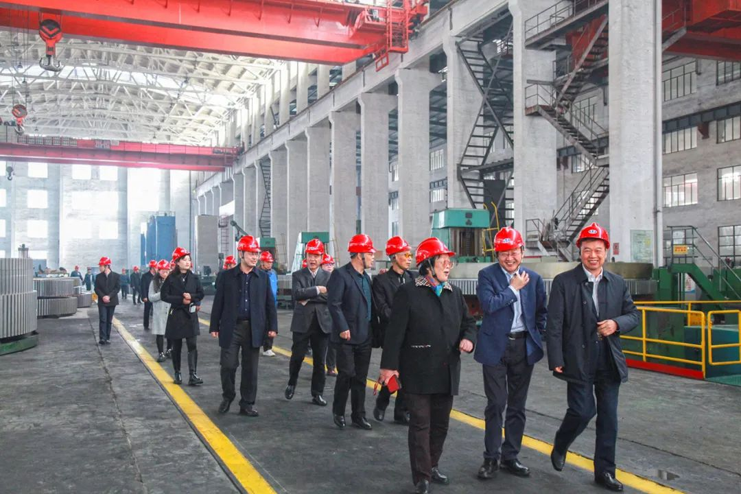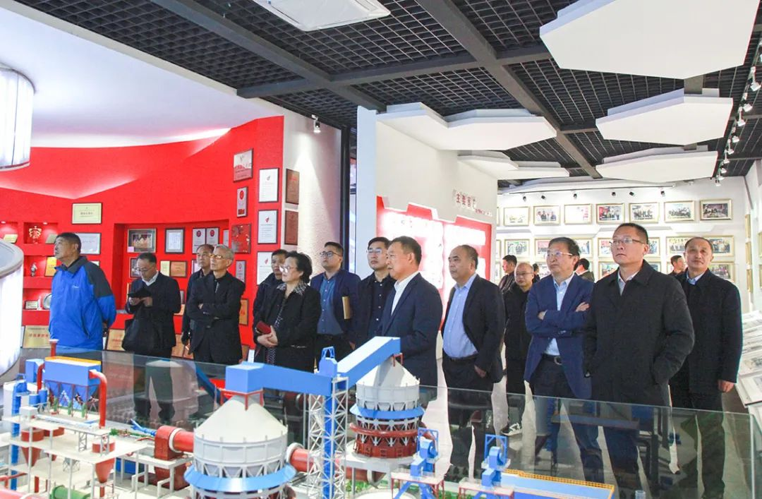 與會代表在董事長王家安,副總經(jīng)理周銀標、賁道林等陪同下,參觀了鵬飛集團回轉(zhuǎn)窯生產(chǎn)車間、質(zhì)量控制中心、節(jié)能儲能新技術(shù)產(chǎn)業(yè)研究院及鵬飛展示廳、黨建工作室、王家安勞模工作室。