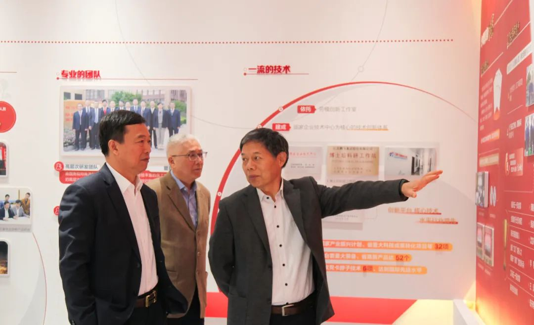 近日,江蘇省進出口商會會長笪家祥來鵬飛集團調研考察,海安市商務局黨組成員、副局長周先宇,公司董事長王家安、副總經(jīng)理賁道林陪同參觀了鵬飛展示中心、黨建館。王家安詳細介紹了鵬飛的發(fā)展歷程、工業(yè)技術、創(chuàng)新成果及未來規(guī)劃,笪會長也對鵬飛集團的經(jīng)營模式、科技創(chuàng)新、節(jié)能環(huán)保、綠色發(fā)展、信息化建設等情況進行了解。