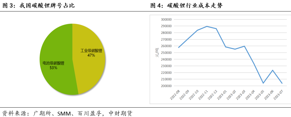 2、需求方面(1)廣東省作為國內(nèi)3C電子商品制造消費(fèi)大區(qū),其鋰電池產(chǎn)業(yè)基礎(chǔ)雄厚,擁有最完善的鋰電池產(chǎn)業(yè)鏈,涵蓋了從上游金屬礦產(chǎn)資源、電池材料,到中游電芯制造及PACK組裝,再到下游鋰電池應(yīng)用及電池回收利用的全產(chǎn)業(yè)鏈。(2)碳酸鋰的主要終端消費(fèi)為新能源產(chǎn)業(yè)(電動(dòng)汽車、儲(chǔ)能)及3C消費(fèi)類電池。根據(jù)市場反饋,2023年6月我國新能源汽車產(chǎn)銷分別完成78.4萬輛和80.6萬輛,同比分別增長32.8%和35.2%,市場占有率達(dá)到30.7%。6月我國動(dòng)力電池產(chǎn)量共計(jì)60.1GWh,同比增長45.7%,環(huán)比增長6.3%。其中三元電池產(chǎn)量17.7GWh,占總產(chǎn)量29.4%,同比下降4.2%,環(huán)比下降4.9%;磷酸鐵鋰電池產(chǎn)量42.2GWh,占總產(chǎn)量70.3%,同比增長86.3%,環(huán)比增長11.7%。6月,我國動(dòng)力電池銷量共計(jì)52.2GWh,同比增長9.9%。其中三元電池銷量18.4GWh,占總銷量35.2%,同比下降16.8%;磷酸鐵鋰電池銷量33.7GWh,占總銷量64.5%,同比增長33.0%。6月,我國動(dòng)力電池裝車量32.9GWh,同比增長21.8%,環(huán)比增長16.5%。其中三元電池裝車量10.1GWh,占總裝車量30.6%,同比下降13%,環(huán)比增長11.6%;磷酸鐵鋰電池裝車量22.7GWh,占總裝車量69.1%,同比增長47.5%,環(huán)比增長18.7%。(3)今年5月中旬開始,儲(chǔ)能市場需求逐漸向好,磷酸鐵鋰市場開工率上漲,帶動(dòng)了碳酸鋰的需求量,預(yù)計(jì)下半年儲(chǔ)能市場需求增量顯著。進(jìn)入7月份以后,隨著3C數(shù)碼市場出口貿(mào)易的訂單逐步完結(jié),需求又恢復(fù)平淡。動(dòng)力市場活躍度雖有增強(qiáng),但還未完全恢復(fù),終端的汽車動(dòng)力電池需求量仍較為有限。正極材料企業(yè)多有備貨,碳酸鋰高價(jià)向下傳導(dǎo)困難,放緩了備貨節(jié)奏,觀望市場走勢,采購較為謹(jǐn)慎。(4)下游企業(yè)基本采用隨行就市的報(bào)價(jià)模式,根據(jù)原材料價(jià)格來擬定交易合同。開工率受訂單影響,上半年動(dòng)力市場訂單狀況不佳,總體較去年沒有穩(wěn)定增長;3C消費(fèi)端海外訂單增量明顯,進(jìn)出口貿(mào)易狀況良好;儲(chǔ)能市場逐步增量,但訂單、需求、價(jià)格等向上傳導(dǎo)仍需時(shí)間,目前碳酸鋰的需求端情況仍較弱。(5)今年碳酸鋰價(jià)格大幅下跌,上游貿(mào)易商違約率不高。國內(nèi)訂單在市場價(jià)格波動(dòng)劇烈的影響下,視價(jià)格行情分成兩種情況,原材料價(jià)格上漲時(shí),上游企業(yè)較為強(qiáng)勢,原材料價(jià)格下跌時(shí),下游較為強(qiáng)勢,會(huì)取消原有訂單報(bào)價(jià),簽署新訂單。出口的貿(mào)易訂單極少違約,且因今年碳酸鋰價(jià)格回落的緣故,今年新開工生產(chǎn)的銷售利潤率較高。(6)目前下游的供應(yīng)和銷售情況皆平穩(wěn),原料庫存一般維持在2周左右。