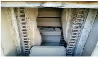 原來設計是粉磨水泥,調(diào)配原料經(jīng)皮帶輸送提升機,再到鎖風閥,后來增加礦渣輸送經(jīng)皮帶輸送到提升機,皮帶機機頭易堵,提升機殼體黏料(如圖3所示)。